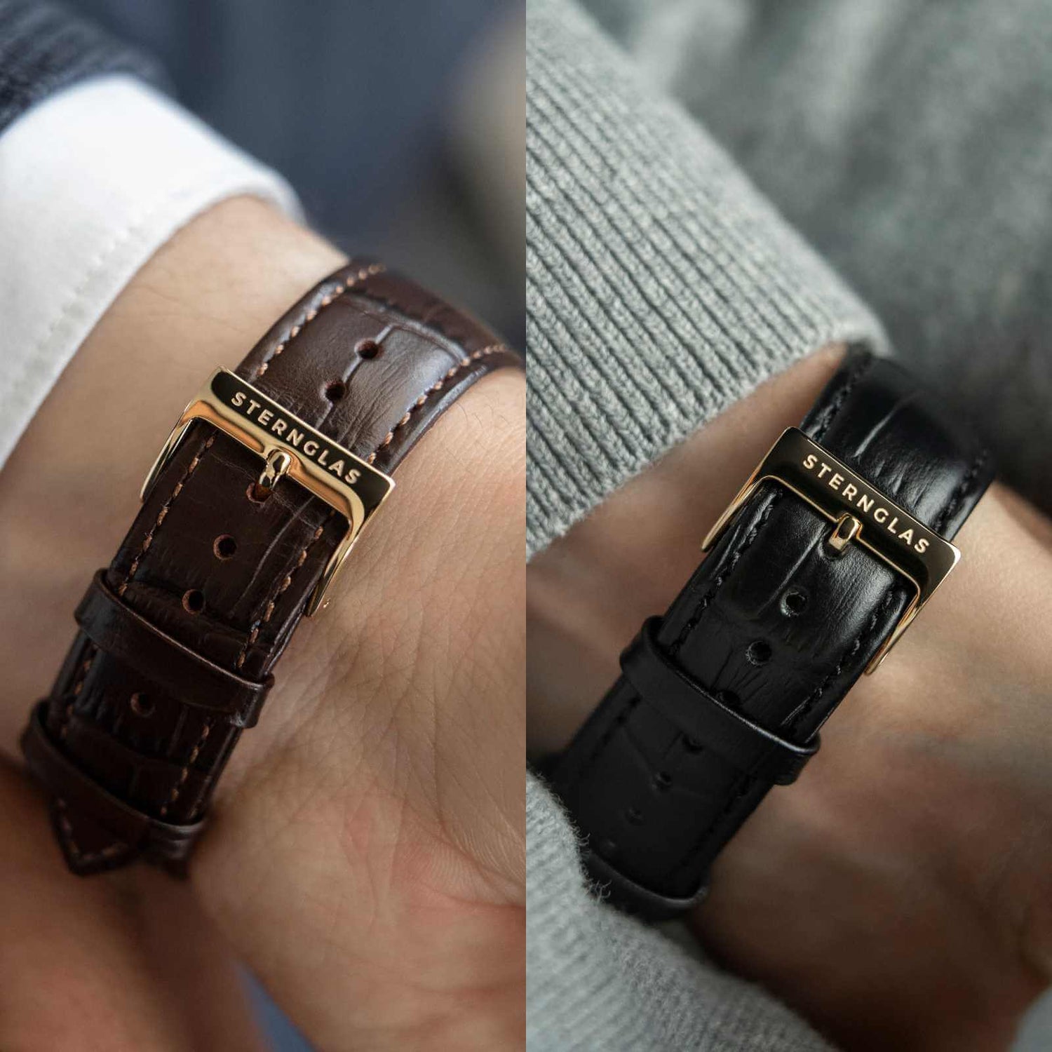 Strap | Heritage 20 dark brown or black, genuine cowhide leather with alligator embossing, Milanaise 20 or SuperSlim 20 gold |