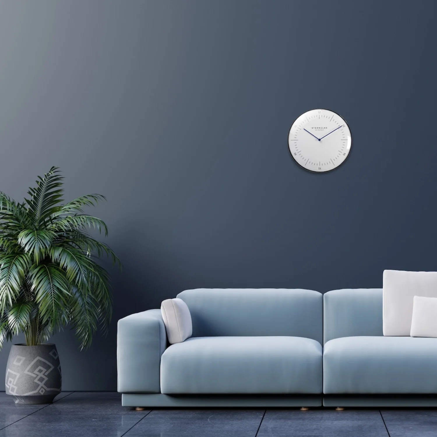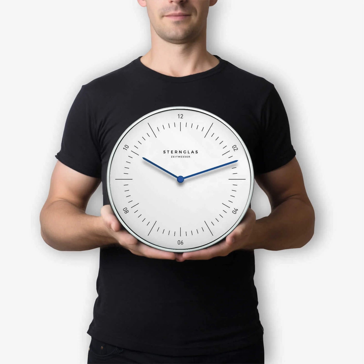 The Naos Wall Clock embodies the essence of Bauhaus design with its clean lines, minimalist dial, and slightly domed glass. Housed in a polished aluminum case, it adds a subtle yet elegant accent to any interior – whether at home or in the office. With its clear typography, flowing hands, and balanced proportions, the Naos offers both aesthetic appeal and everyday functionality. The 30 cm diameter ensures excellent readability, while the quiet sweep movement keeps your space calm and distraction-free. Awarded the iF Design Award in 2020, the Naos dial stands for timeless design that speaks for itself – across all color variants.