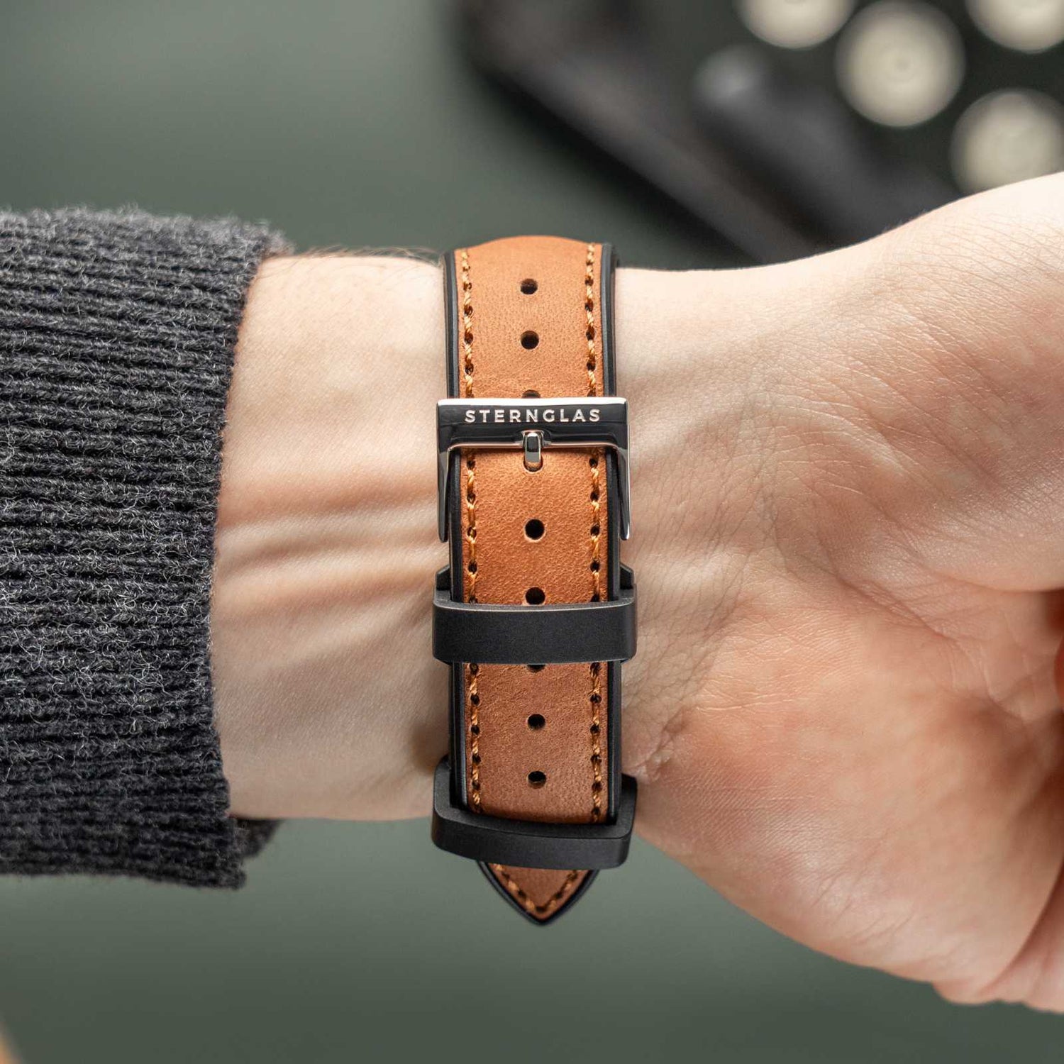 Our new hybrid strap combines the comfort and durability of a sporty silicone band with the elegance of genuine leather. The soft silicone underside ensures a pleasant feel on the wrist, even in warm weather, during movement or in contact with water. At the same time, the finely stitched leather top gives the strap a stylish and urban appearance. After over two years of development, we’ve created a strap that effortlessly balances daily practicality with refined design. Perfect for those who value function without compromising on aesthetics. The integrated quick-release system allows for easy strap changes – no tools required.