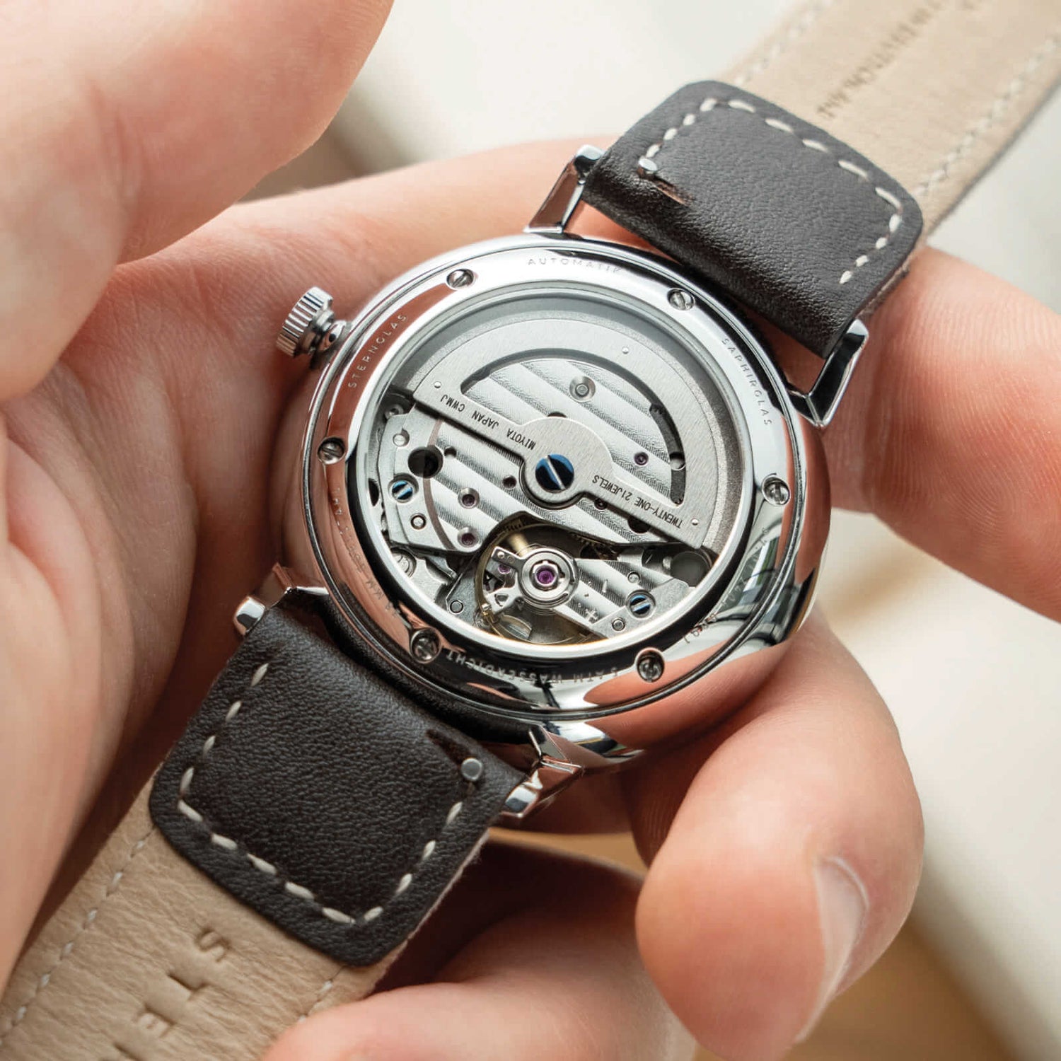 We only use sapphire crystal for our timepieces. This type of watch glass is usually found in the luxury watch market.