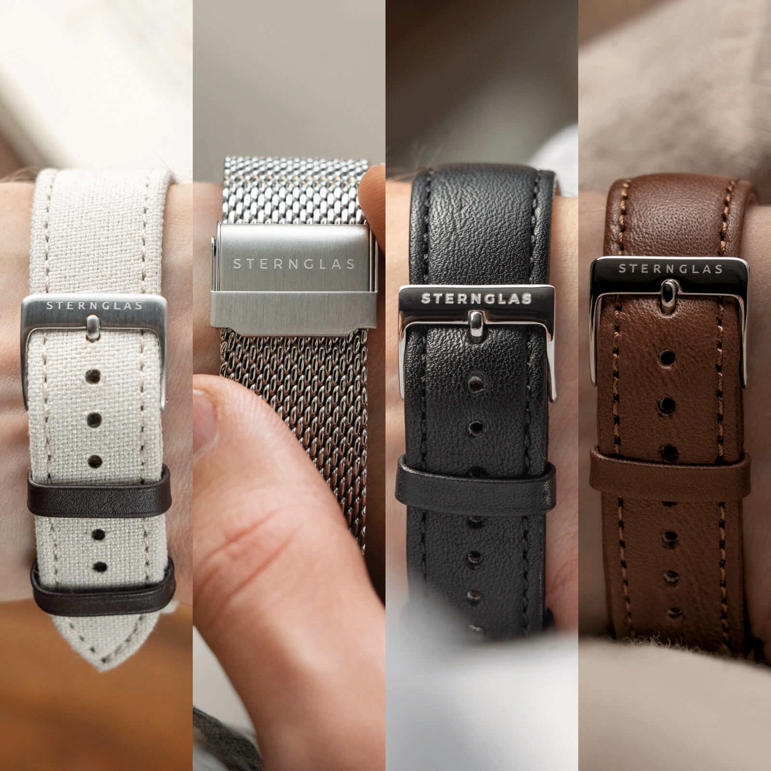 Modena 20 (black or dark brown, calf leather), Nylon 20 beige, Milanaise 20 silver