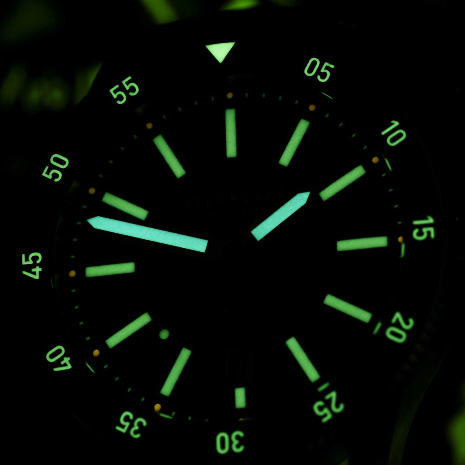 We only use sapphire crystal for our timepieces. This type of watch glass is usually found in the luxury watch market.