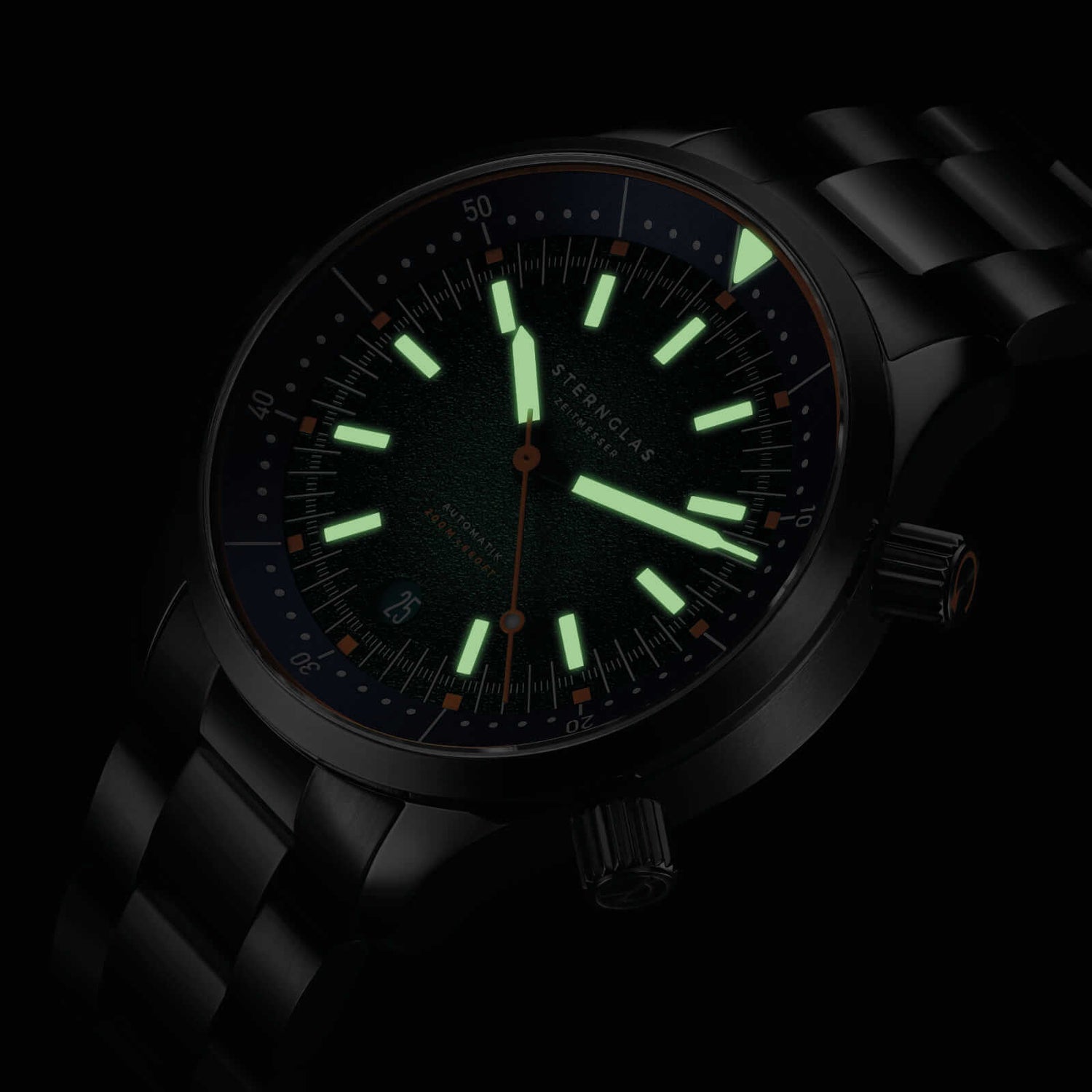 We only use sapphire crystal for our timepieces. This type of watch glass is usually found in the luxury watch market.
