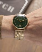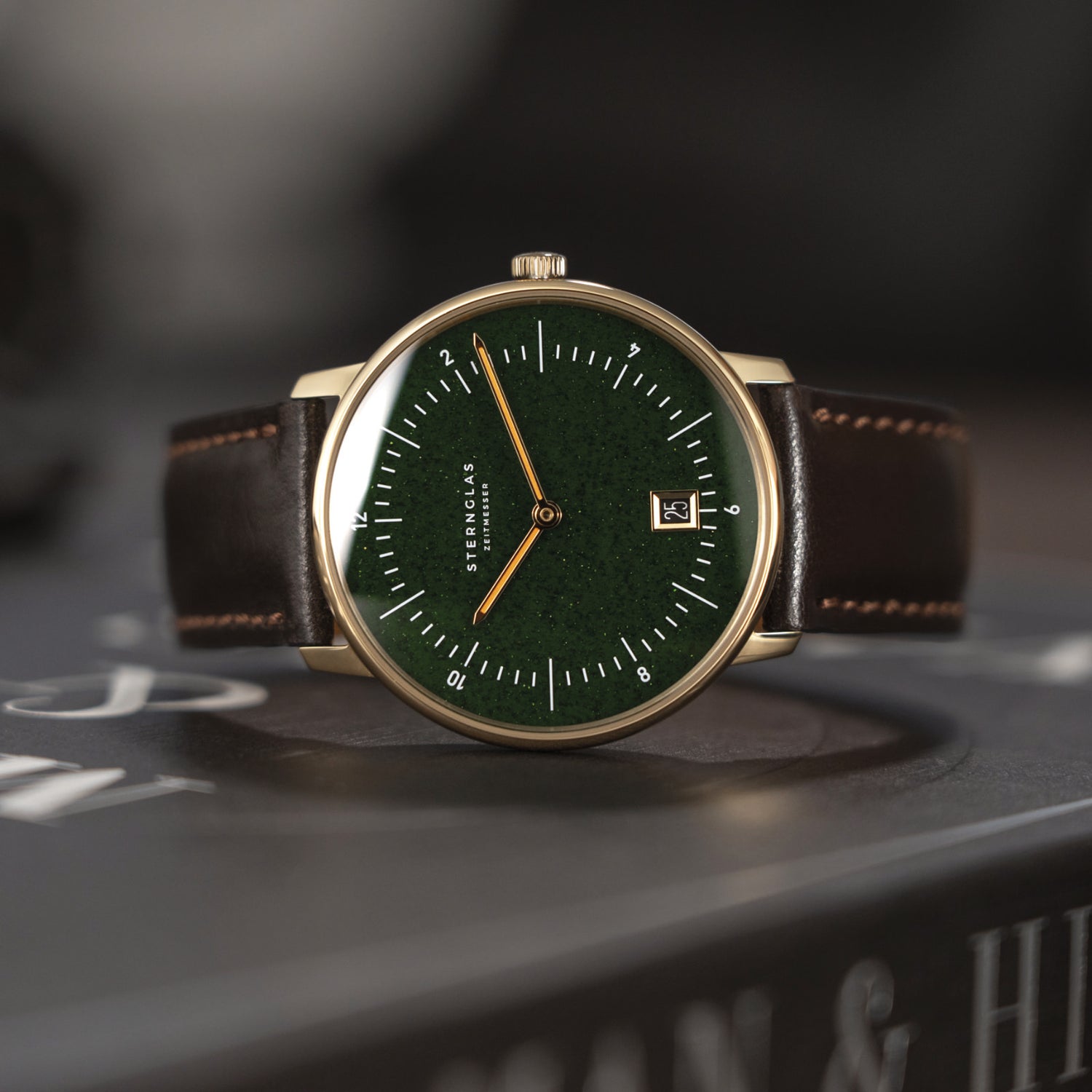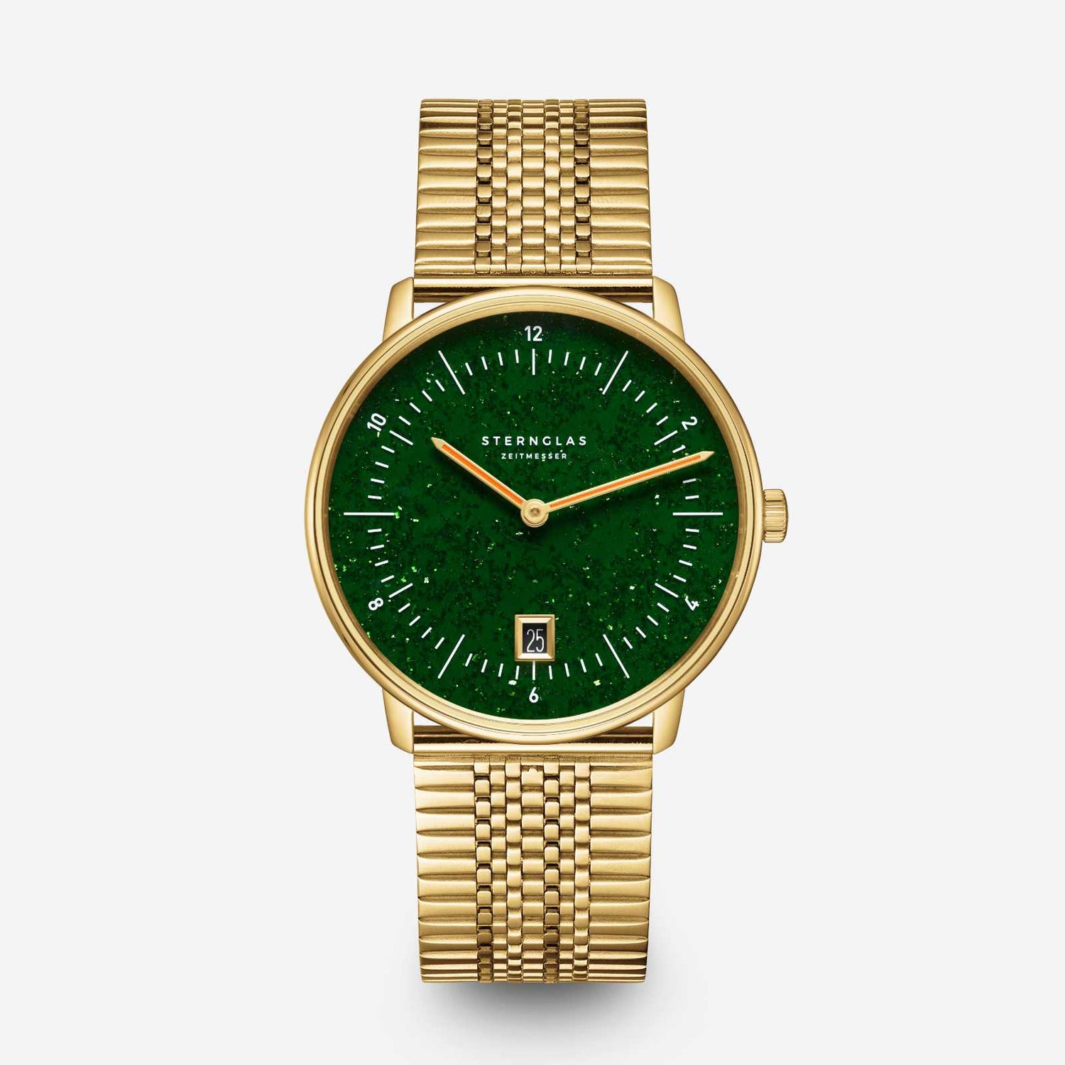 The 38 mm polished stainless steel case of the Naos Edition Aventurine, available in gold or silver, highlights the classic dial design. Luminova on the hands ensures good readability even in low light.