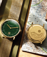 The edition comes with a choice of a classic black leather strap or an elegant metal bracelet. Thanks to the handy quick-release mechanism, you can easily swap out the strap to match your personal style.