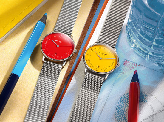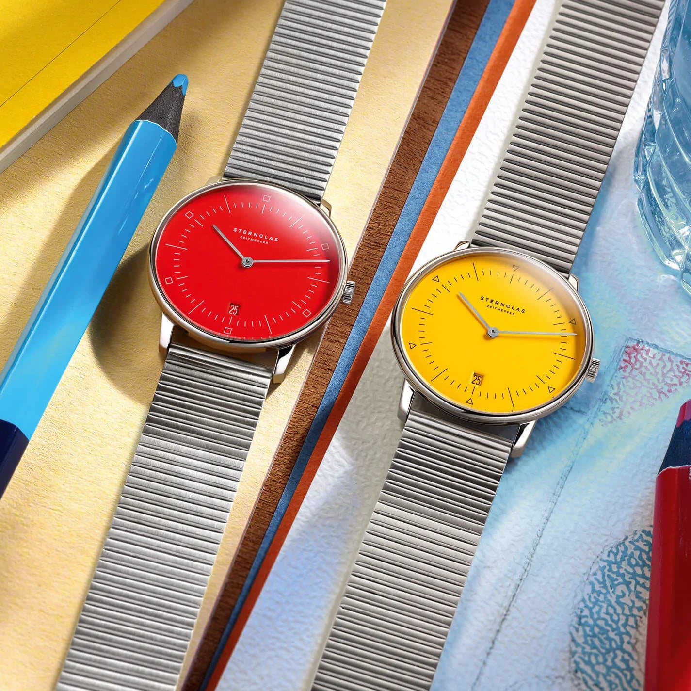 Wassily Kandinsky, one of the most influential masters of the Bauhaus, is known for his association of color and form, which is still a trademark today. The sharper the respective form, the warmer, and the blunter the angle, the colder, according to his theory. This assumption is the basis for the Naos Edition Bauhaus II, and so our classic watch shines in the colors yellow, red, and blue - limited to 333 copies each. Our Naos embodies all the qualities that a daily companion must have: timeless Bauhaus design, durability through high-quality components, and details that catch the eye.