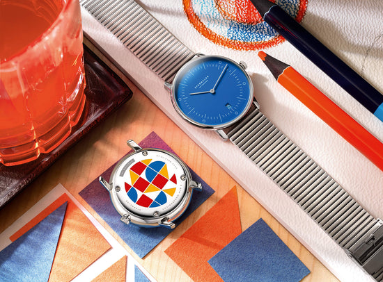 The screwed case back of this special edition speaks for itself. Primary colors made of enamel, cast in an elaborate and precise form. In addition, the limited edition number makes each piece unique.