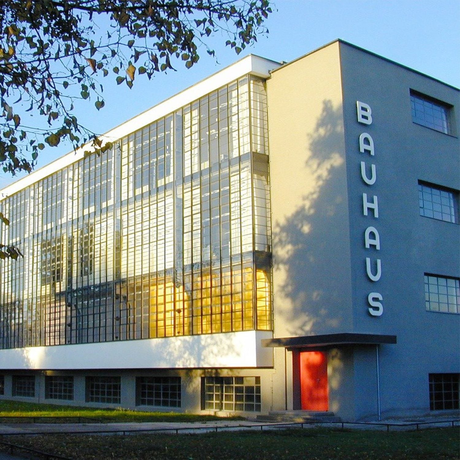 The red date frame on the front is reminiscent of the entrance of the Bauhaus school, the most innovative forge of art, design, and architecture of the 20th century.