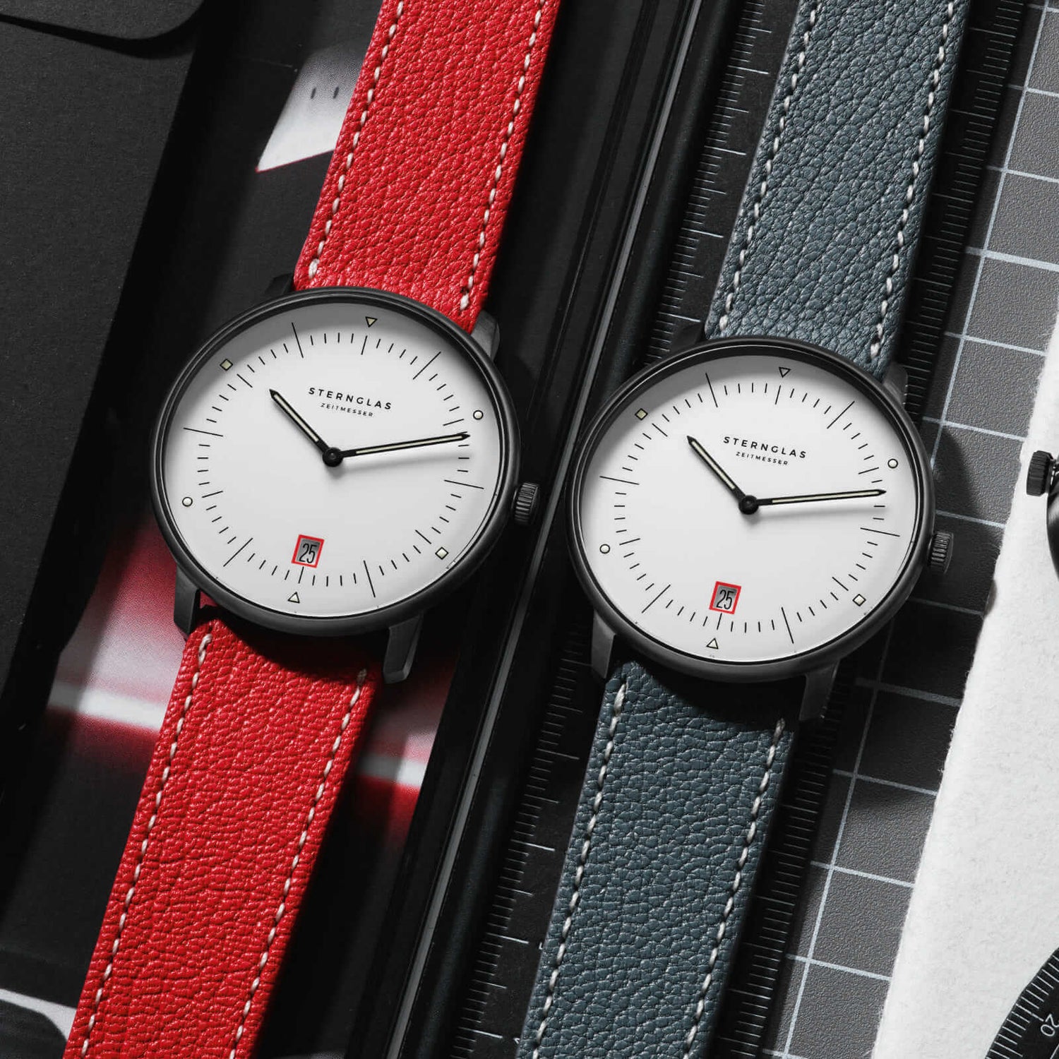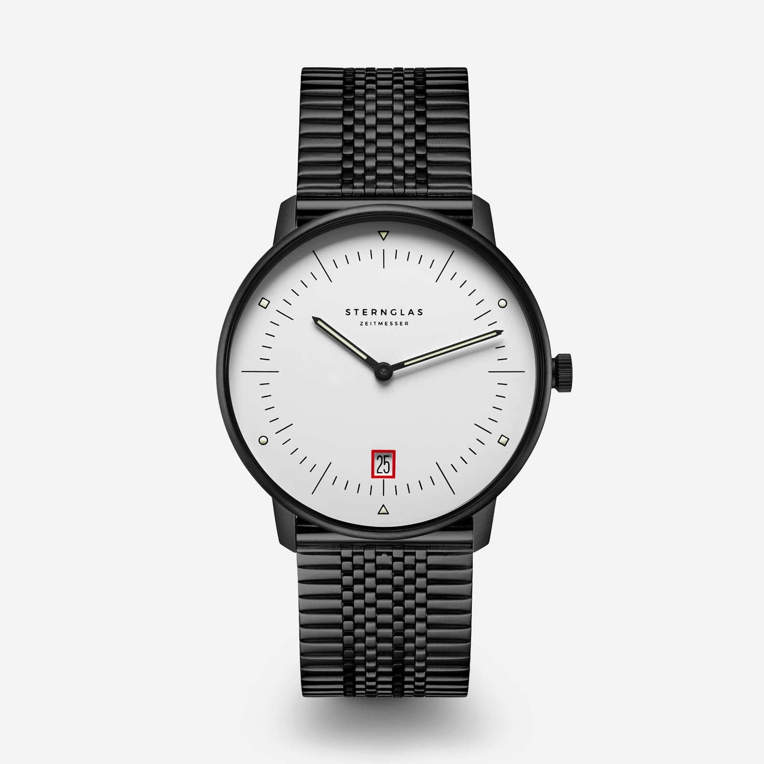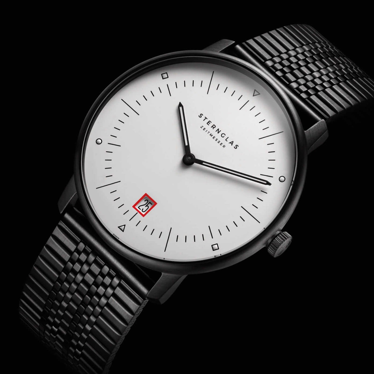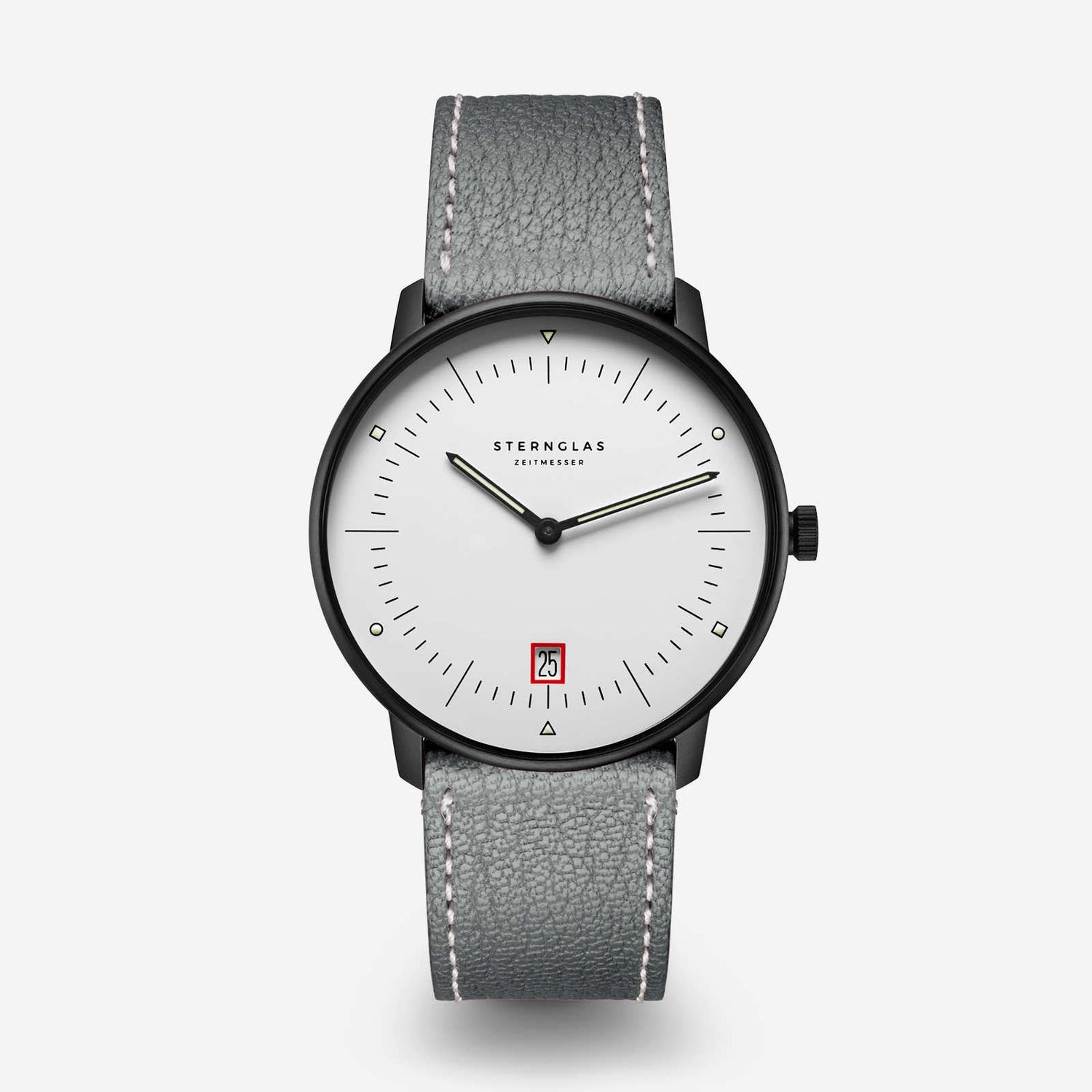 One of the fundamental concepts of Bauhaus design is "Form follows Function." This approach also played a central role in the development of the STERNGLAS Naos. The Naos combines a clear, minimalist aesthetic with functional elements. Every detail of the watch, from its sleek case to the easily readable dial, was carefully designed to maximize functionality without compromising on form.