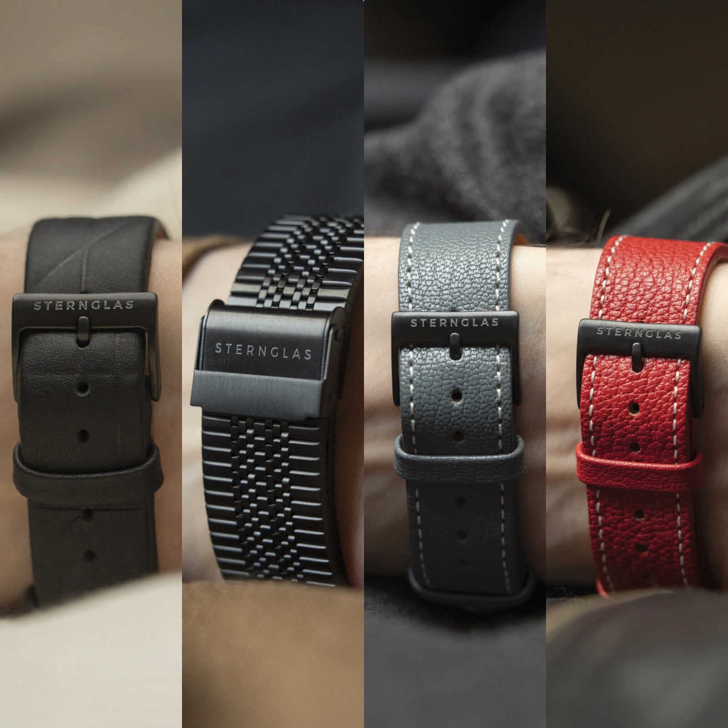 Strap Edition strap black, SuperSlim metal bracelet or Capra goat leather strap light green or red