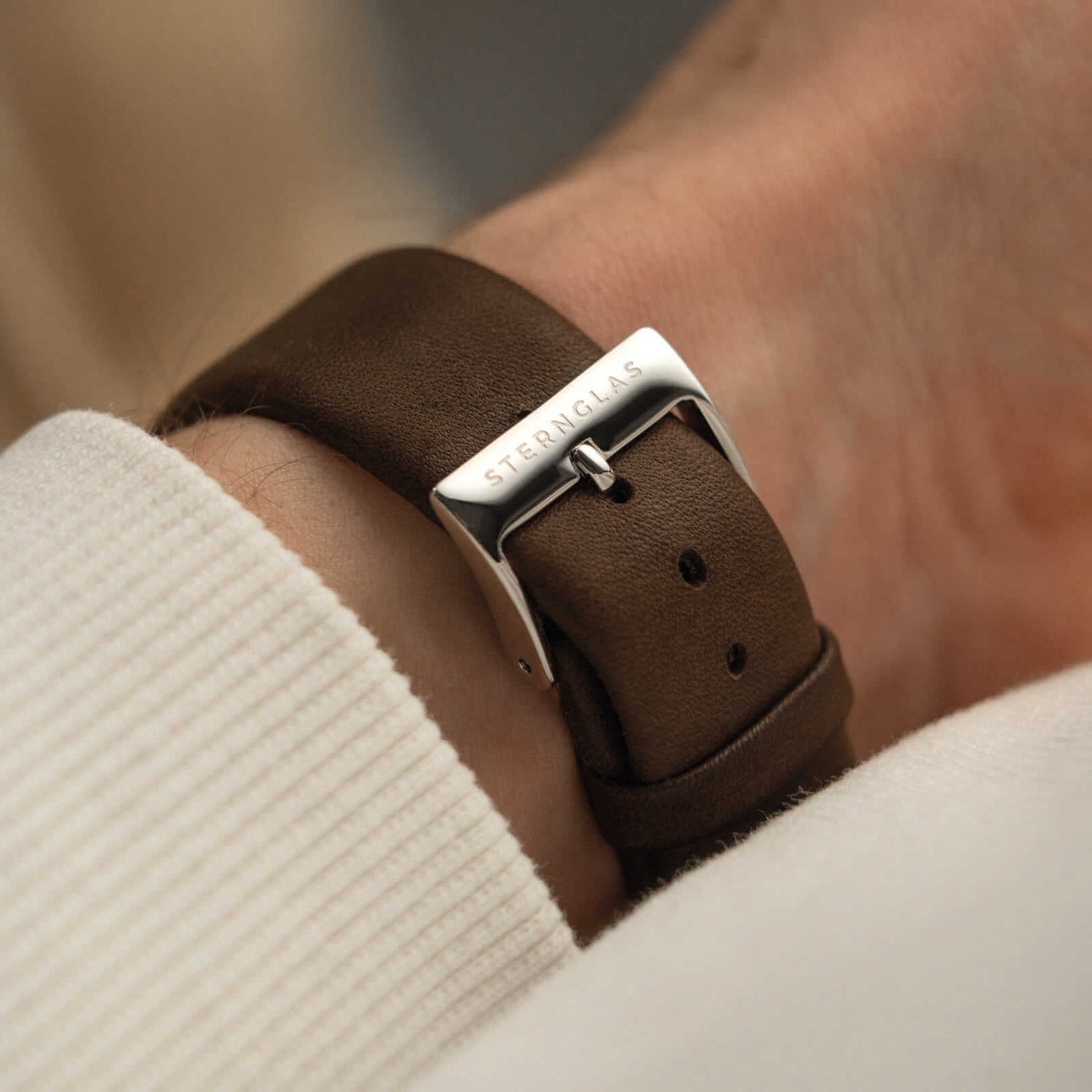 The velvety soft calfskin and the outstanding workmanship of our specially developed premium strap create a noticeably pleasant feeling when worn.