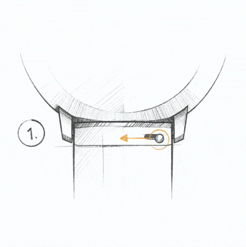 3 — Put on a new strap by sliding the pin inwards again and inserting the spring bar one after the other into the holes in the case.
