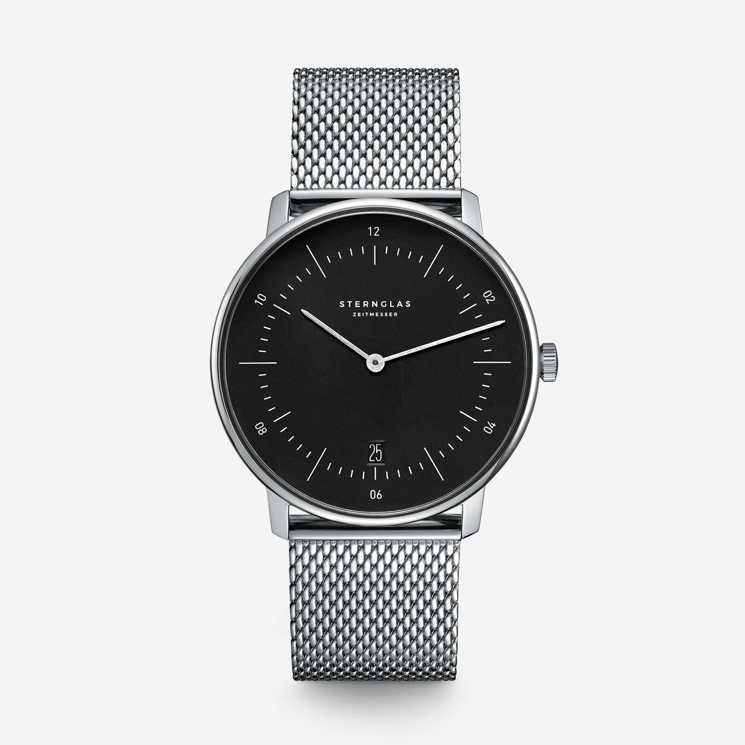 The Naos is the popular classic in the STERNGLAS range. This timepiece combines everything that makes up Bauhaus design and brings the basic idea into the present: