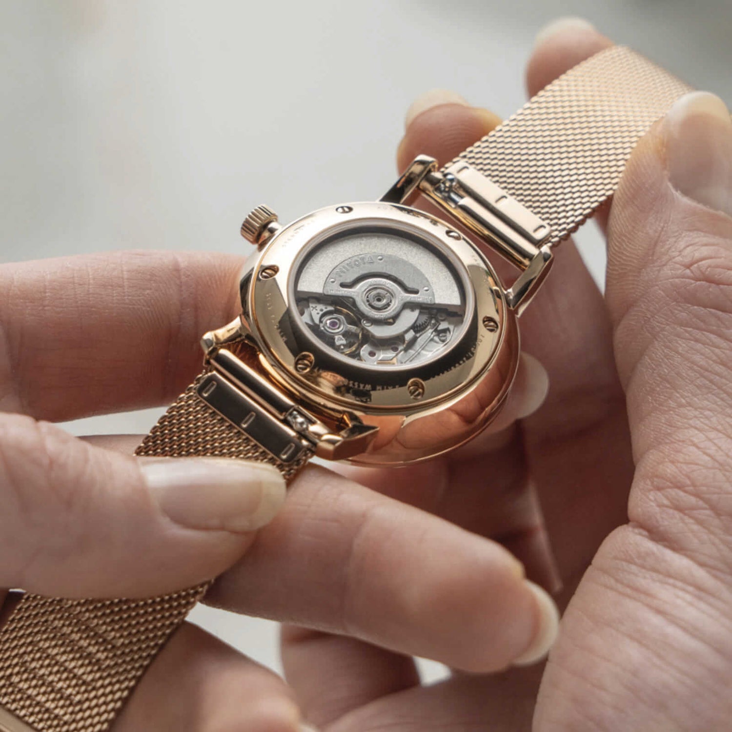 Case material | Stainless steel 316L, polished PVD rose gold |