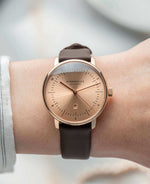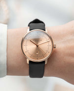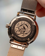 The motif unites nature, art, and craftsmanship in a poetic way, completing the clear Bauhaus-inspired design of the watch with a subtle layer of symbolic depth.