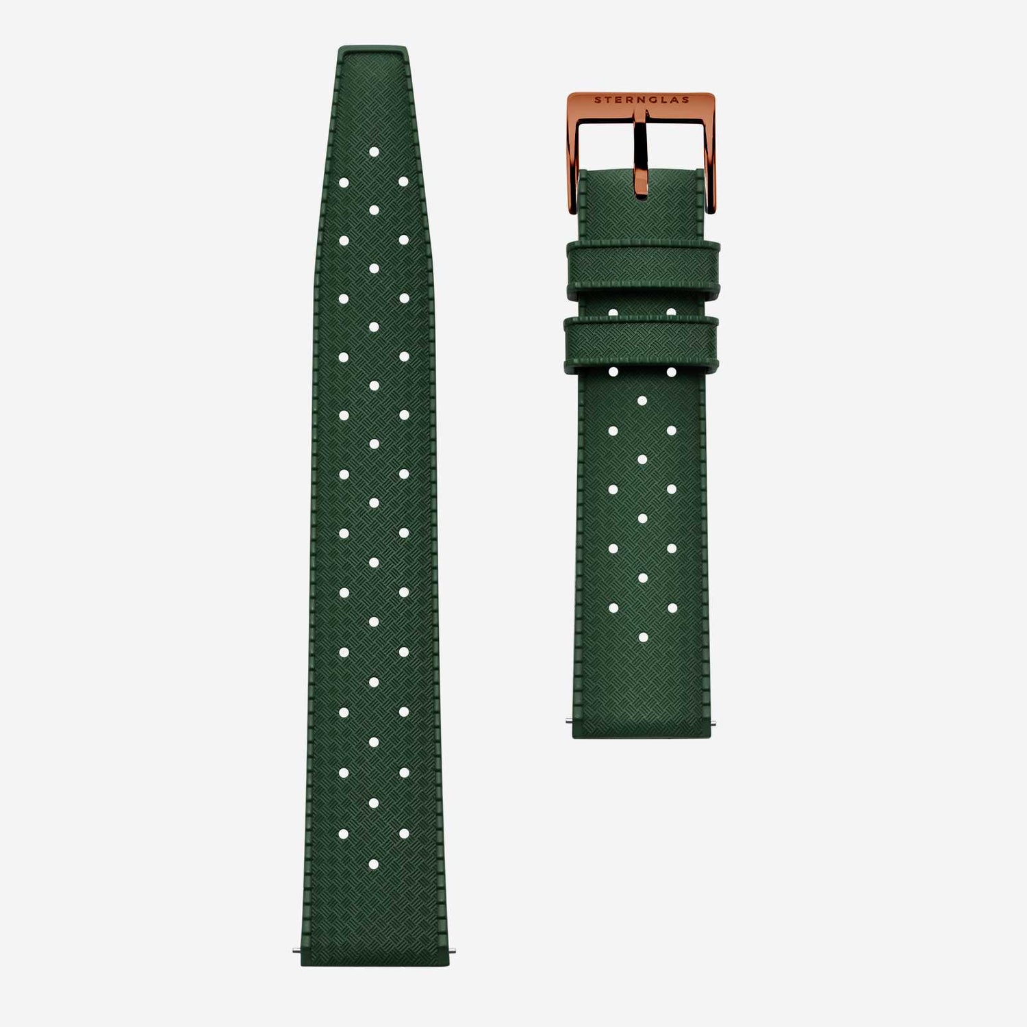 Our rubber strap is made from high-quality fluoro rubber in one piece. Durable, robust, and pleasant to the touch. The structured back also prevents sticking to the skin. Perfect for those who want it classic and uncomplicated. Thanks to the quick-change system, changing the strap is effortless.